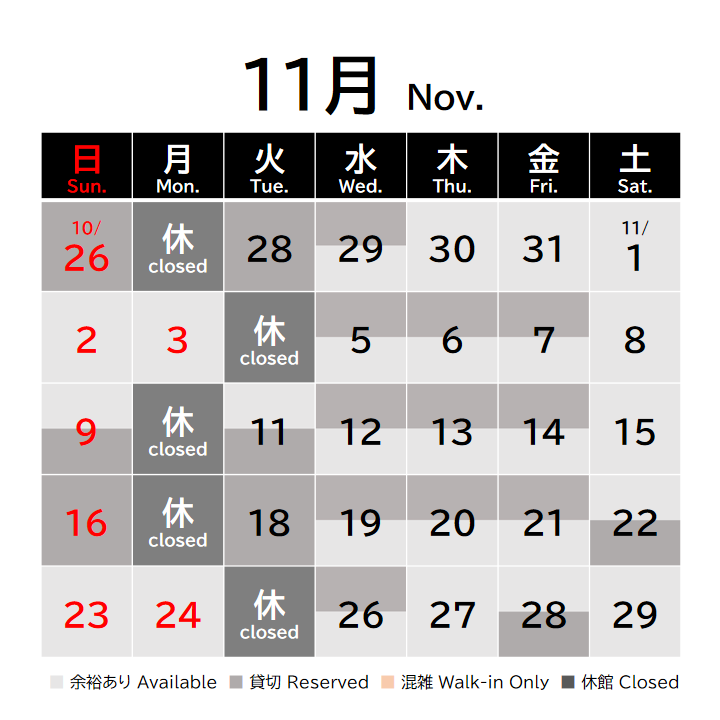 11月24日(月・祝) 開館 → 11月25日(火) 休館